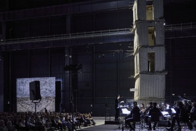 « An Index of Metals a pour projet de détourner la forme séculaire de l’opéra vers une expérience de perception totale plongeant le spectateur dans une matière incandescente aussi bien lumineuse que sonore. »