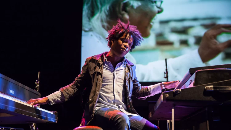 Il existe un lien de parenté entre Steve Reich et Christophe Chassol. Le premier compose en 1995 avec City Life une sorte de reportage musical sur la vie agitée de Manhattan (bruits de moteurs, de klaxons, de freins, d’alarmes) et interroge en creux la coexistence d’une grande diversité de culture, les problèmes de pollution sonore et de violence des grandes mégalopoles. Le second, à l’invitation de Miroirs Étendus, s’attaque à sa ville : Paris. Connu dans le monde de la pop et du jazz pour ses collaborations avec Frank Ocean, Sébastien Tellier ou Solange (la sœur de Beyoncé), mais aussi pour son travail au cinéma ou avec les plasticiens Sophie Calle ou Xavier Veilhan, Christophe Chassol approche, enregistre et filme la vie comme des mélodies qu’il sample, rejoue et accompagne de ses propres compositions musicales. Sur scène avec Miroirs Étendus, il met sa magie musicale au service d’un concert lumineux, ponctué d’une pièce extraite de son album « Big Sun » : Reich & Darwin. Un témoignage du rapport singulier et intime qu’il entretient avec le maître de la musique répétitive.
